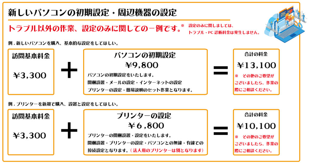 設定・修理・トラブルの一例